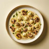 Ravioli ripieni di funghi porcini, conditi con burro e salvia