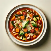 Zuppa ricca di verdure di stagione, legumi e pasta o riso.