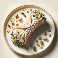 Un tubo di pasta fritto ripieno di ricotta dolce, zucchero e aromi, spesso guarnito con scorze d'arancia candite e pistacchi tritati